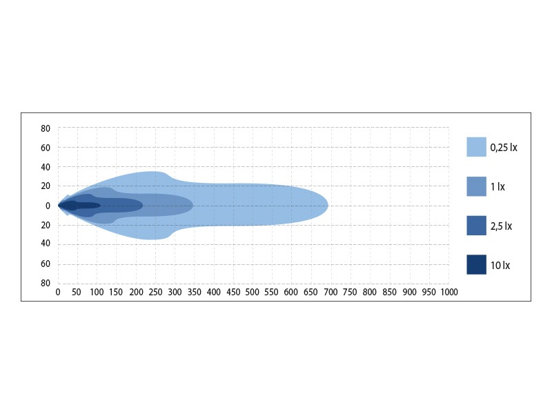 Kirjeldus: 6 x Osram LED, valge ja kollane parktuli, kroomitud raam, 1lux @345m, 3.66A @13.7V