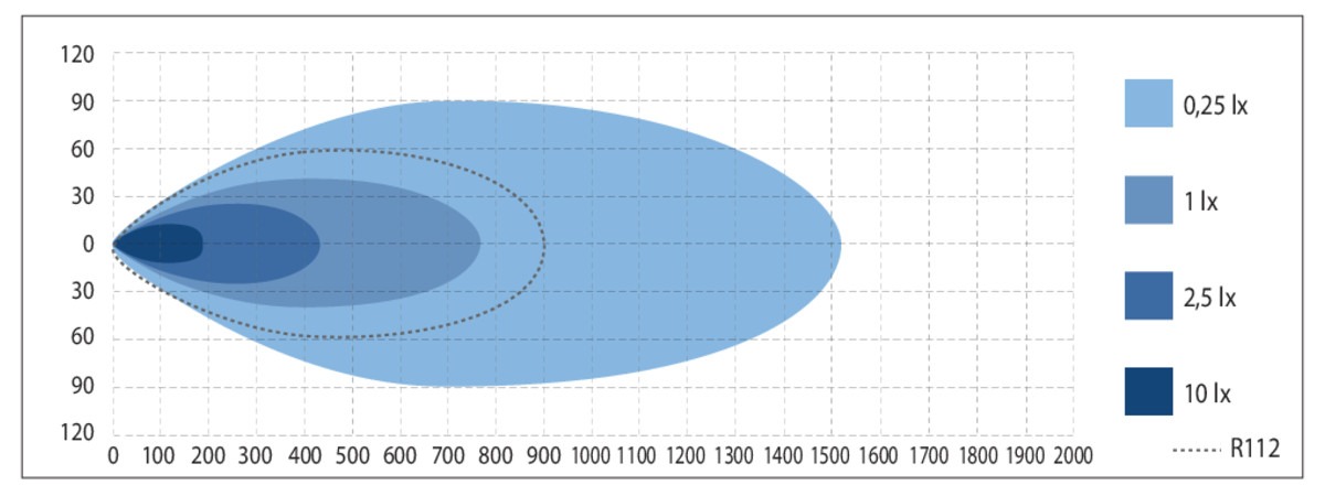 1 lux @ 760m (full), 450m (R112)